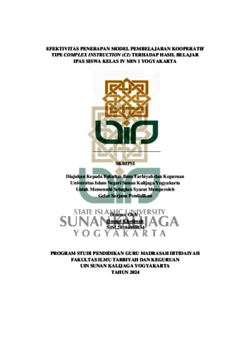 Text (EFEKTIVITAS PENERAPAN MODEL PEMBELAJARAN KOOPERATIF TIPE COMPLEX INSTRUCTION (CI) TERHADAP HASIL BELAJAR IPAS SISWA KELAS IV MIN 1 YOGYAKARTA)