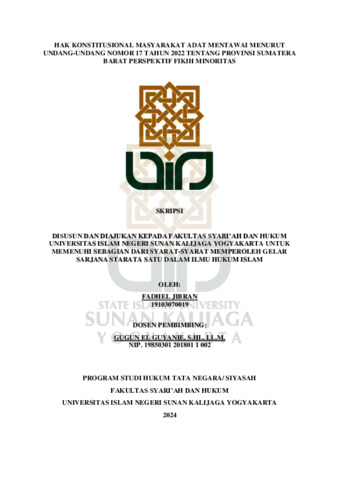 Text (HAK KONSTITUSIONAL MASYARAKAT ADAT MENTAWAI MENURUT UNDANG-UNDANG NOMOR 17 TAHUN 2022 TENTANG PROVINSI SUMATERA BARAT PERSPEKTIF FIKIH MINORITAS)