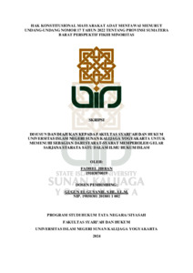 Fadhel Jibran, NIM.: 19103070019 (2024) HAK KONSTITUSIONAL MASYARAKAT ADAT MENTAWAI MENURUT UNDANG-UNDANG NOMOR 17 TAHUN 2022 TENTANG PROVINSI SUMATERA BARAT PERSPEKTIF FIKIH MINORITAS. Skripsi thesis, UIN SUNAN KALIJAGA YOGYAKARTA.