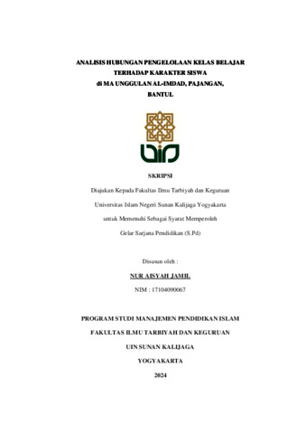Text (ANALISIS HUBUNGAN PENGELOLAAN KELAS BELAJAR TERHADAP KARAKTER SISWA di MA UNGGULAN AL-IMDAD, PAJANGAN, BANTUL)