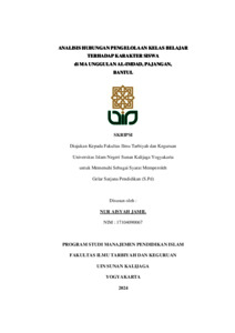 Nur Aisyah Jamil, NIM.: 17104090067 (2024) ANALISIS HUBUNGAN PENGELOLAAN KELAS BELAJAR TERHADAP KARAKTER SISWA di MA UNGGULAN AL-IMDAD, PAJANGAN, BANTUL. Skripsi thesis, UIN SUNAN KALIJAGA YOGYAKARTA.