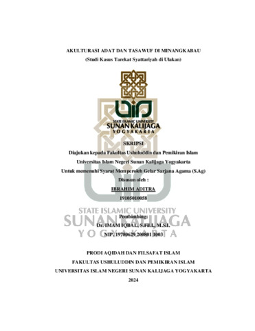 Ibrahim Aditra, NIM.: 19105010058 (2024) AKULTURASI ADAT DAN TASAWUF DI MINANGKABAU (STUDI KASUS TAREKAT SYATTARIYAH DI ULAKAN). Skripsi thesis, UIN SUNAN KALIJAGA YOGYAKARTA.