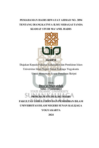 Ihya’ul Mawatdah, NIM.: 17105050023 (2024) PEMAHAMAN HADIS RIWAYAT AHMAD NO. 3894 TENTANG DIANGKATNYA ILMU SEBAGAI TANDA KIAMAT STUDI MA’ANIL HADIS. Skripsi thesis, UIN SUNAN KALIJAGA YOGYAKARTA.
