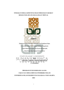 Chyntia Aminova Diana Siskawati, NIM.: 17105040089 (2024) TINDAKAN SOSIAL KOMUNITAS HAGO HSR (HAGO SAHABAT RELIGI) PADA RUANG KEAGAMAAN VIRTUAL. Skripsi thesis, UIN SUNAN KALIJAGA YOGYAKARTA.