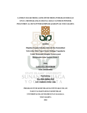 Text (LATIHAN DASAR MEDIA (LDM) DIVISI MEDIA PUBLIKASI SEBAGAI UPAYA MENINGKATKAN DIGITAL SKILLS SANTRI DI PONDOK PESANTREN AL-MUNAWWIR KOMPLEK Q KRAPYAK YOGYAKARTA)
