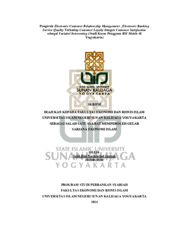 Setia Rini Nushrothul Jannah, NIM.: 20108020104 (2024) Pengaruh Electronic Customer Relationship Management , Electronic Banking Service Quality Terhadap Customer Loyalty dengan Customer Satisfaction sebagai Variabel Intervening (Studi Kasus Pengguna BSI Mobile di Yogyakarta). Skripsi thesis, UIN SUNAN KALIJAGA YOGYAKARTA.