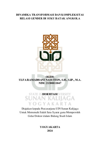 Ulfa Ramadhani Nasution, S.H., S.IP., M.A., NIM.: 21300011047 (2024) DINAMIKA TRANSFORMASI DAN KOMPLEKSITAS RELASI GENDER DI SUKU BATAK ANGKOLA. Doctoral thesis, UIN SUNAN KALIJAGA YOGYAKARTA.