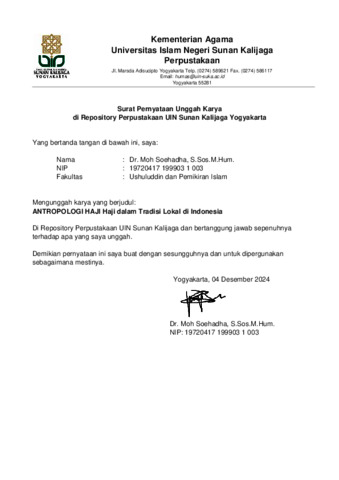 ANTROPOLOGI HAJI Haji dalam Tradisi Lokal di Indonesia.pdf - Published Version Download (15MB) | Preview |