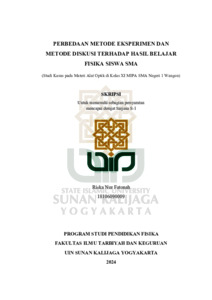 Riska Nur Fatonah, NIM.: 18106090009 (2024) PERBEDAAN METODE EKSPERIMEN DAN METODE DISKUSI TERHADAP HASIL BELAJAR FISIKA SISWA SMA (Studi Kasus pada Materi Alat Optik di Kelas XI MIPA SMA Negeri 1 Wangon). Skripsi thesis, UIN SUNAN KALIJAGA YOGYAKARTA.