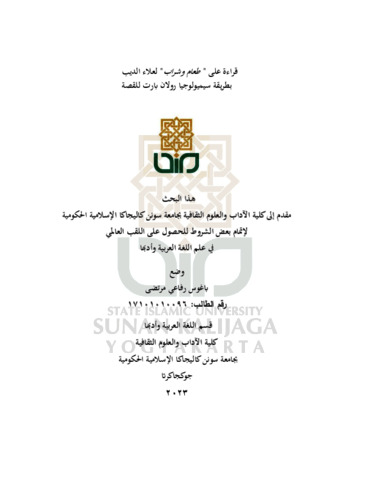 Bagus Rifa'i Murtadlo, NIM.: 17101010096 (2023) QIRAAH 'ALA "TA'AM WA SHARAB" LI 'ALAA AL DEEB BI TARIQAH SIMIOLOGIYYA ROLAND BARTHES LI AL QISSAH. Skripsi thesis, UIN SUNAN KALIJAGA YOGYAKARTA.