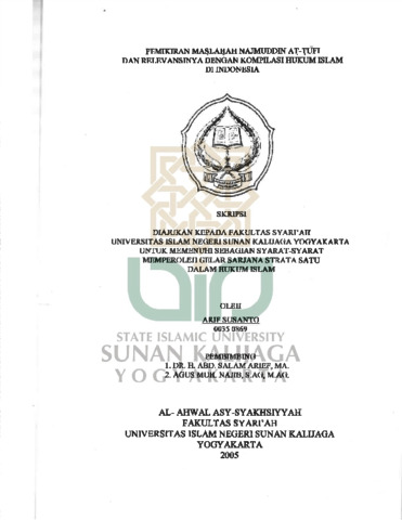 Arif Susanto, NIM.: 00350869 (2005) PEMIKIRAN MASLAHAH NAJMUDDIN AT-TUFI DAN RELEVANSINYA DENGAN KOMPILASI HUKUM ISLAM DI INDONESIA. Skripsi thesis, UIN SUNAN KALIJAGA YOGYAKARTA.