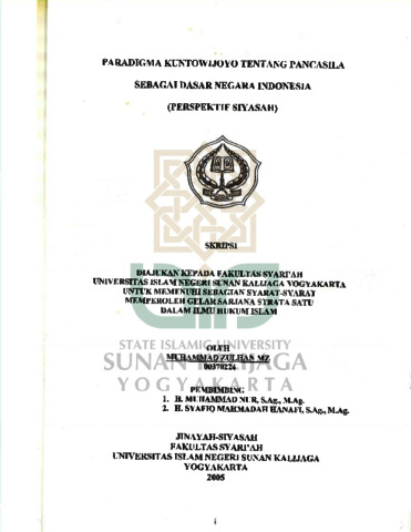 Muhammad Zulhan MZ, NIM.: 00370224 (2005) PARADIGMA KUNTOWIJOYO TENTANG PANCASILA SEBAGAI DASAR NEGARA INDONESIA (PERSPEKTIF SIYASAH). Skripsi thesis, UIN SUNAN KALIJAGA YOGYAKARTA.