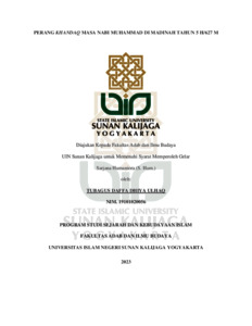 Tubagus Daffa Dhiya Ulhaq, NIM.: 19101020056 (2023) PERANG KHANDAQ MASA NABI MUHAMMAD DI MADINAH TAHUN 5 H/627 M. Skripsi thesis, UIN SUNAN KALIJAGA YOGYAKARTA.