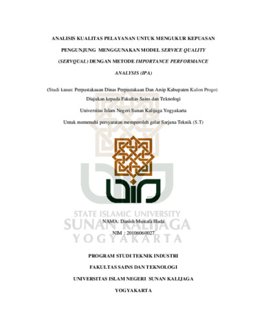 Danish Mustafa Huda, NIM.: 20106060027 (2024) ANALISIS KUALITAS PELAYANAN UNTUK MENGUKUR KEPUASAN PENGUNJUNG MENGGUNAKAN MODEL SERVICE QUALITY (SERVQUAL) DENGAN METODE IMPORTANCE PERFORMANCE ANALYSIS (IPA). Skripsi thesis, UIN SUNAN KALIJAGA YOGYAKARTA.