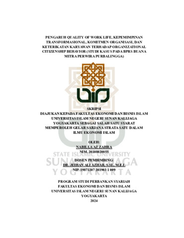 Nabilla Az Zahra, NIM.: 20108020055 (2024) PENGARUH QUALITY OF WORK LIFE, KEPEMIMPINAN TRANSFORMASIONAL, KOMITMEN ORGANISASI, DAN KETERIKATAN KARYAWAN TERHADAP ORGANIZATIONAL CITIZENSHIP BEHAVIOR (STUDI KASUS PADA BPRS BUANA MITRA PERWIRA PURBALINGGA). Skripsi thesis, UIN SUNAN KALIJAGA YOGYAKARTA.