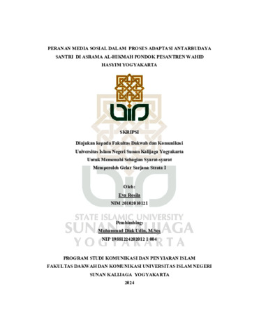Eva Rosila, NIM.: 20102010121 (2024) PERANAN MEDIA SOSIAL DALAM PROSES ADAPTASI ANTARBUDAYA SANTRI DI ASRAMA AL-HIKMAH PONDOK PESANTREN WAHID HASYIM YOGYAKARTA. Skripsi thesis, UIN SUNAN KALIJAGA YOGYAKARTA.