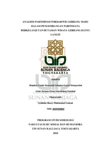 Syahidan Hanry Muhammad Usamah, NIM.: 20107020045 (2024) ANALISIS PARTISIPASI POKDARWIS GERBANG MADU DALAM PENGEMBANGAN PARIWISATA BERKELANJUTAN DI TAMAN WISATA GERBANG BANYU LANGIT. Skripsi thesis, UIN SUNAN KALIJAGA YOGYAKARTA.
