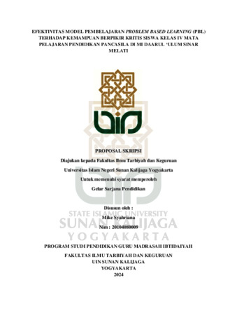 Text (EFEKTIVITAS MODEL PEMBELAJARAN PROBLEM BASED LEARNING (PBL) TERHADAP KEMAMPUAN BERPIKIR KRITIS SISWA KELAS IV MATA PELAJARAN PENDIDIKAN PANCASILA DI MI DAARUL ‘ULUM SINAR MELATI)