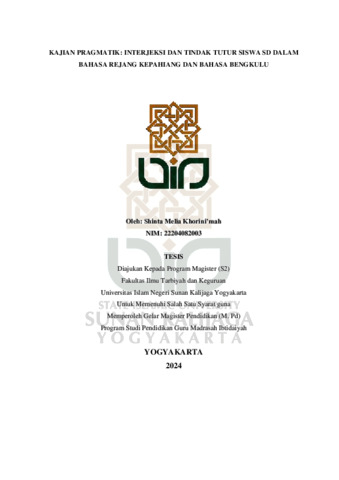 Text (KAJIAN PRAGMATIK: INTERJEKSI DAN TINDAK TUTUR SISWA SD DALAM BAHASA REJANG KEPAHIANG DAN BAHASA BENGKULU)
