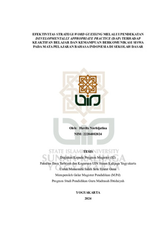 Text (EFEKTIVITAS STRATEGI WORD GUESSING MELALUI PENDEKATAN DEVELOPMENTALLY APPROPRIATE PRACTICE (DAP) TERHADAP KEAKTIFAN BELAJAR DAN KEMAMPUAN BERKOMUNIKASI SISWA PADA MATA PELAJARAN BAHASA INDONESIA DI SEKOLAH DASAR)