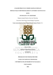 Muhamad Tiddad Wahyu P, NIM.: 20106060011 (2024) ANALISIS PERAWATAN MESIN GILINGAN DENGAN MENGGUNAKAN METODE RELIABILITY CENTERED MAINTENANCE (RCM) STUDI KASUS : PT. MADUBARU. Skripsi thesis, UIN SUNAN KALIJAGA YOGYAKARTA.