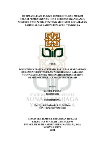Saiful Fahmi, NIM.: 22203012012 (2024) OPTIMASILISASI FUNGSI PEMERINTAHAN MUKIM DALAM PEMBANGUNAN DESA BERDASARKAN QANUN NOMOR 2 TAHUN 2014 TENTANG MUKIM DI KECAMATAN BABUSSALAM KABUPATEN ACEH TENGGARA. Masters thesis, UIN SUNAN KALIJAGA YOGYAKARTA.