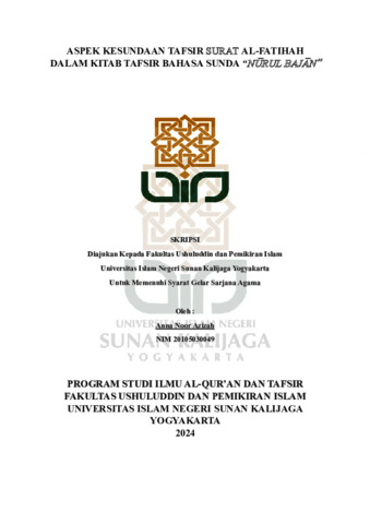 Text (ASPEK KESUNDAAN TAFSIR SURAT AL-FATIHAH DALAM KITAB TAFSIR BAHASA SUNDA “NURUL BAJAN”)
