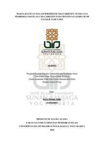 Raya Moniqa Atilla, NIM.: 21105020051 (2024) MAKNA BANTUAN DALAM PERSPEKTIF IMAN KRISTEN: STUDI ATAS PEMBERIAN BANTUAN UMAT KRISTEN PADA PENYINTAS GEMPA BUMI CIANJUR TAHUN 2022. Skripsi thesis, UIN SUNAN KALIJAGA YOGYAKARTA.