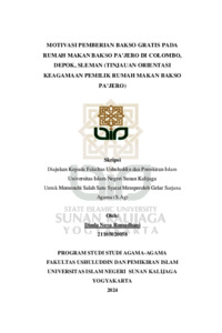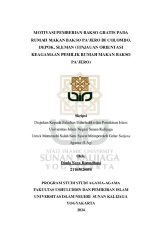 Dinda Nova Romadhani, NIM.: 21105020058 (2024) MOTIVASI PEMBERIAN BAKSO GRATIS PADA RUMAH MAKAN BAKSO PA’JERO DI COLOMBO, DEPOK, SLEMAN (TINJAUAN ORIENTASI KEAGAMAAN PEMILIK RUMAH MAKAN BAKSO PA’JERO). Skripsi thesis, UIN SUNAN KALIJAGA YOGYAKARTA.