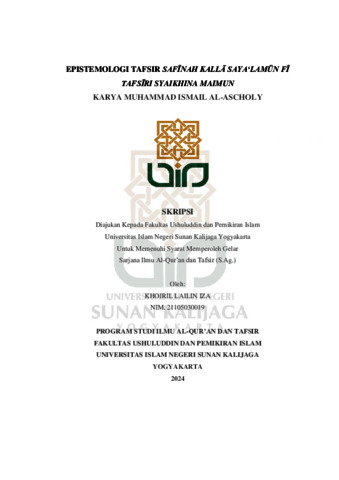 Text (EPISTEMOLOGI TAFSIR SAFINAH KALLA SAYAʻLAMUN FI TAFSIRI SYAIKHINA MAIMUN KARYA MUHAMMAD ISMAIL AL-ASCHOLY)