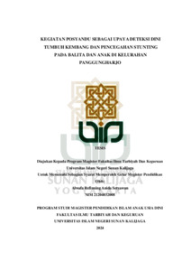 Alwafa Refinning Anida Setyawan, NIM.: 21204032008 (2024) KEGIATAN POSYANDU SEBAGAI UPAYA DETEKSI DINI TUMBUH KEMBANG DAN PENCEGAHAN STUNTING PADA BALITA DAN ANAK DI KELURAHAN PANGGUNGHARJO. Masters thesis, UIN SUNAN KALIJAGA YOGYAKARTA.