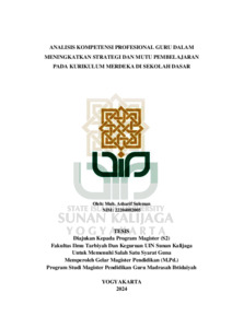 Muh. Asharif Suleman, NIM.: 22204082005 (2024) ANALISIS KOMPETENSI PROFESIONAL GURU DALAM MENINGKATKAN STRATEGI DAN MUTU PEMBELAJARAN PADA KURIKULUM MERDEKA DI SEKOLAH DASAR. Masters thesis, UIN SUNAN KALIJAGA YOGYAKARTA.