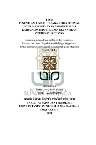 Ariyan Eka Putra, NIM.: 22206062004 (2024) PENENTUAN JUMLAH TENAGA KERJA OPTIMAL UNTUK MENINGKATKAN PRODUKTIVITAS KERJA PADA INDUSTRI JASA KECANTIKAN (STUDI KASUS PT XYZ). Masters thesis, UIN SUNAN KALIJAGA YOGYAKARTA.