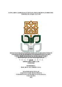 Ahmad Ahda Sabila, S.H., NIM.: 22203012060 (2024) FATWA ABDUL QADIR HASSAN TENTANG POLIGAMI DENGAN BIBI ISTRI : PERSPEKTIF ISTIQRA’ MA’NAWI. Masters thesis, UIN SUNAN KALIJAGA YOGYAKARTA.
