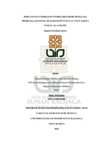 Text (PERLAWANAN TERHADAP OTORITARIANISME PENGUASA MESIR DALAM NOVEL MUZAKKARTI FI SIJN AN-NISA’ KARYA NAWAL AL-SA’DAWI (KAJIAN SOSIOLOGI SASTRA)”)
