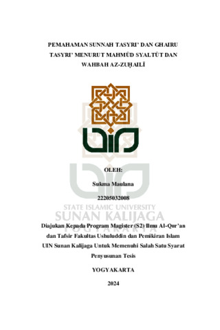 Sukma Maulana, NIM.: 22205032008 (2024) PEMAHAMAN SUNNAH TASYRI’ DAN GHAIRU TASYRI’ MENURUT MAHMUD SYALTUT DAN WAHBAH AZ-ZUHAILI. Masters thesis, UIN SUNAN KALIJAGA YOGYAKARTA.