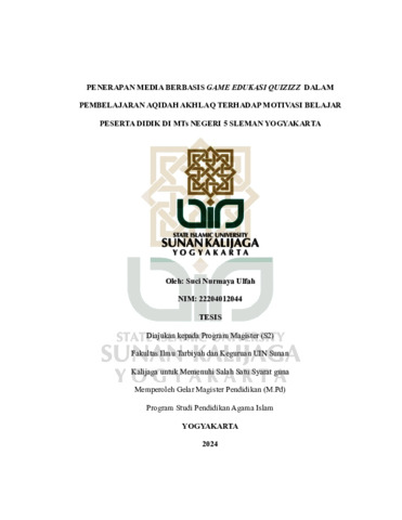 Suci Nurmaya Ulfah, NIM.: 22204012044 (2024) PENERAPAN MEDIA BERBASIS GAME EDUKASI QUIZIZZ DALAM PEMBELAJARAN AQIDAH AKHLAQ TERHADAP MOTIVASI BELAJAR PESERTA DIDIK DI MTs NEGERI 5 SLEMAN YOGYAKARTA. Masters thesis, UIN SUNAN KALIJAGA YOGYAKARTA.