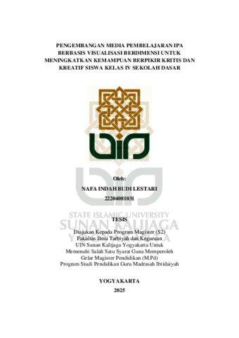Nafa Indah Budi Lestari, NIM.: 22204081031 (2025) PENGEMBANGAN MEDIA PEMBELAJARAN IPA BERBASIS VISUALISASI BERDIMENSI UNTUK MENINGKATKAN KEMAMPUAN BERPIKIR KRITIS DAN KREATIF SISWA KELAS IV SEKOLAH DASAR. Masters thesis, UIN SUNAN KALIJAGA YOGYAKARTA.