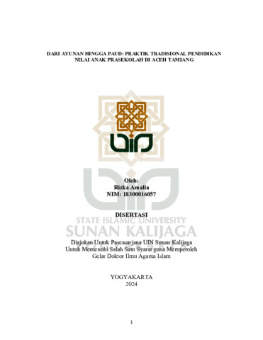Rizka Amalia, NIM.: 18300016057 (2025) DARI AYUNAN HINGGA PAUD: PRAKTIK TRADISIONAL PENDIDIKAN NILAI ANAK PRASEKOLAH DI ACEH TAMIANG. Doctoral thesis, UIN SUNAN KALIJAGA YOGYAKARTA.