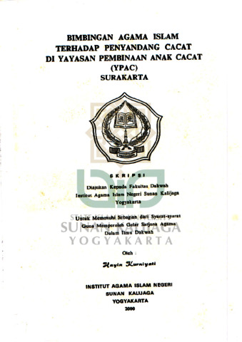 Hayin Kurniyati, NIM.: 88120276 (2000) BIMBINGAN AGAMA ISLAM TERHADAP PENYANDANG CACAT DI YAYASAN PEMBINAAN ANAK CACAT (YPAC) SURAKARTA. Skripsi thesis, UIN SUNAN KALIJAGA YOGYAKARTA.