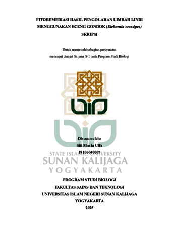 Siti Maria Ulfa, NIM.: 19106040007 (2025) FITOREMEDIASI HASIL PENGOLAHAN LIMBAH LINDI MENGGUNAKAN ECENG GONDOK ( Eichornia crassipes). Skripsi thesis, UIN SUNAN KALIJAGA YOGYAKARTA.