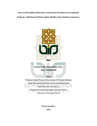 Irsyad Taufik Hidayatullah, S.Sos., NIM.: 22200012038 (2024) INTERVENSI PEMULIHAN PSIKOSOSIAL ANAK KORBAN PENOLAKAN DAN PENGABAIAN KELUARGA ( STUDI KASUS DI PANTI ASUHAN MUSTIKA TAMA, BANTUL, YOGYAKARTA ). Masters thesis, UIN SUNAN KALIJAGA YOGYAKARTA.