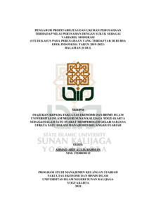Ahmad Arif Aulia Rahman, NIM.: 19108030115 (2024) PENGARUH PROFITABILITAS DAN UKURAN PERUSAHAAN TERHADAP NILAI PERUSAHAN DENGAN SUKUK SEBAGAI VARIABEL MODERASI (STUDI KASUS PADA PERUSAHAAN YANG TERDAFTAR DI BURSA EFEK INDONESIA TAHUN 2019-2023). Skripsi thesis, UIN SUNAN KALIJAGA YOGYAKARTA.