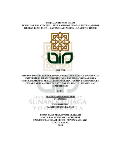 Dian Indah Pangestuti, NIM.: 21103080001 (2025) TINJAUAN HUKUM ISLAM TERHADAP PRAKTIK JUAL BELI KAMBING DENGAN SISTEM JOGROK DI DESA BUMI JAWA – BATANGHARI NUBAN – LAMPUNG TIMUR. Skripsi thesis, UIN SUNAN KALIJAGA YOGYAKARTA.