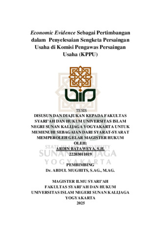 Ardin Bataweya, S.H, NIM.: 22203011019 (2025) ECONOMIC EVIDENCE SEBAGAI PERTIMBANGAN DALAM PENYELESAIAN SENGKETA PERSAINGAN USAHA DI KOMISI PENGAWAS PERSAINGAN USAHA (KPPU). Masters thesis, UIN SUNAN KALIJAGA YOGYAKARTA.
