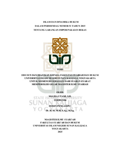 Malisa Utami, NIM.: 22203012106 (2024) ISLAM DAN DINAMIKA HUKUM DALAM PERMENDAG NOMOR 51 TAHUN 2015 TENTANG LARANGAN IMPOR PAKAIAN BEKAS. Masters thesis, UIN SUNAN KALIJAGA YOGYAKARTA.