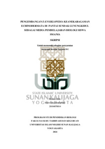 Intan Cahya Ramadhani, NIM.: 20104070014 (2024) PENGEMBANGAN E-ENSIKLOPEDIA KEANEKARAGAMAN ECHINODERMATA DI PANTAI SUNDAK GUNUNGKIDUL SEBAGAI MEDIA PEMBELAJARAN BIOLOGI SISWA SMA/MA. Skripsi thesis, UIN SUNAN KALIJAGA YOGYAKARTA.