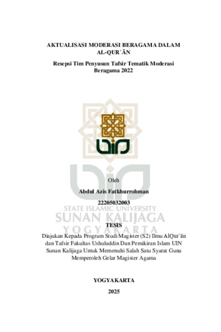 Abdul Azis Fatkhurrohman, NIM.: 22205032003 (2025) AKTUALISASI MODERASI BERAGAMA DALAM AL-QUR`AN RESEPSI TIM PENYUSUN TAFSIR TEMATIK MODERASI BERAGAMA 2022. Masters thesis, UIN SUNAN KALIJAGA YOGYAKARTA.