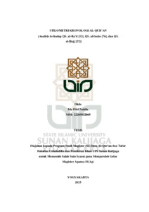 | Uncontrolled Keywords: | Stilometri, Krononologi al-Qur’an, QS. al-Ra’d [13], QS. al-Insan [76], QS. al-Ḥajj [22] |