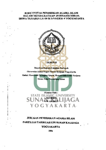 Text (EFEKTIVITAS PENDIDIKAN AGAMA ISLAM DALAM MENINGKATKAN INTERAKSI SOSIAL SISWA TUNARUNGU DI SLB NEGERI 4 YOGYAKARTA)